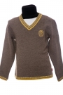 Джемпер вязаный для мальчика темно-бежевого цвета с желтой окантовкой изготовлен из высококачественной Итальянской пряжи с 10% добавкой кашемира,который после обработки силиконами становится очень мягким и приятным к телу ребенка. Этот стильный и красивый джемпер будет радовать вашего мальчика и при правильном уходе прослужит долгое время.