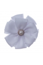 Заколка-бант для волос для девочки изготовлен в виде цветка с бусиной по центру. Стильная и модная заколка для волос для девочки изготовлен из шелковистого атласа белого цвета диаметром 7 см, подойдет для школы и утреника. Имеется металлический зажим-крокодил для надежного крепления к волосам.